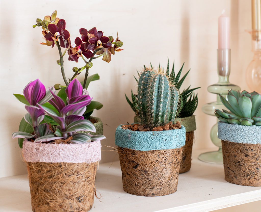 En 2023, Kokodama a introduit le Kokopot. Un produit qui n’est pas suspendu mais qui tient debout. Et qui rappelle un vrai pot de fleurs, mais en fibre de coco. Le pot est à 99 % imperméable et entièrement biodégradable. Le cocotier offre ainsi une alternative unique, durable et naturelle au traditionnel pot en plastique.